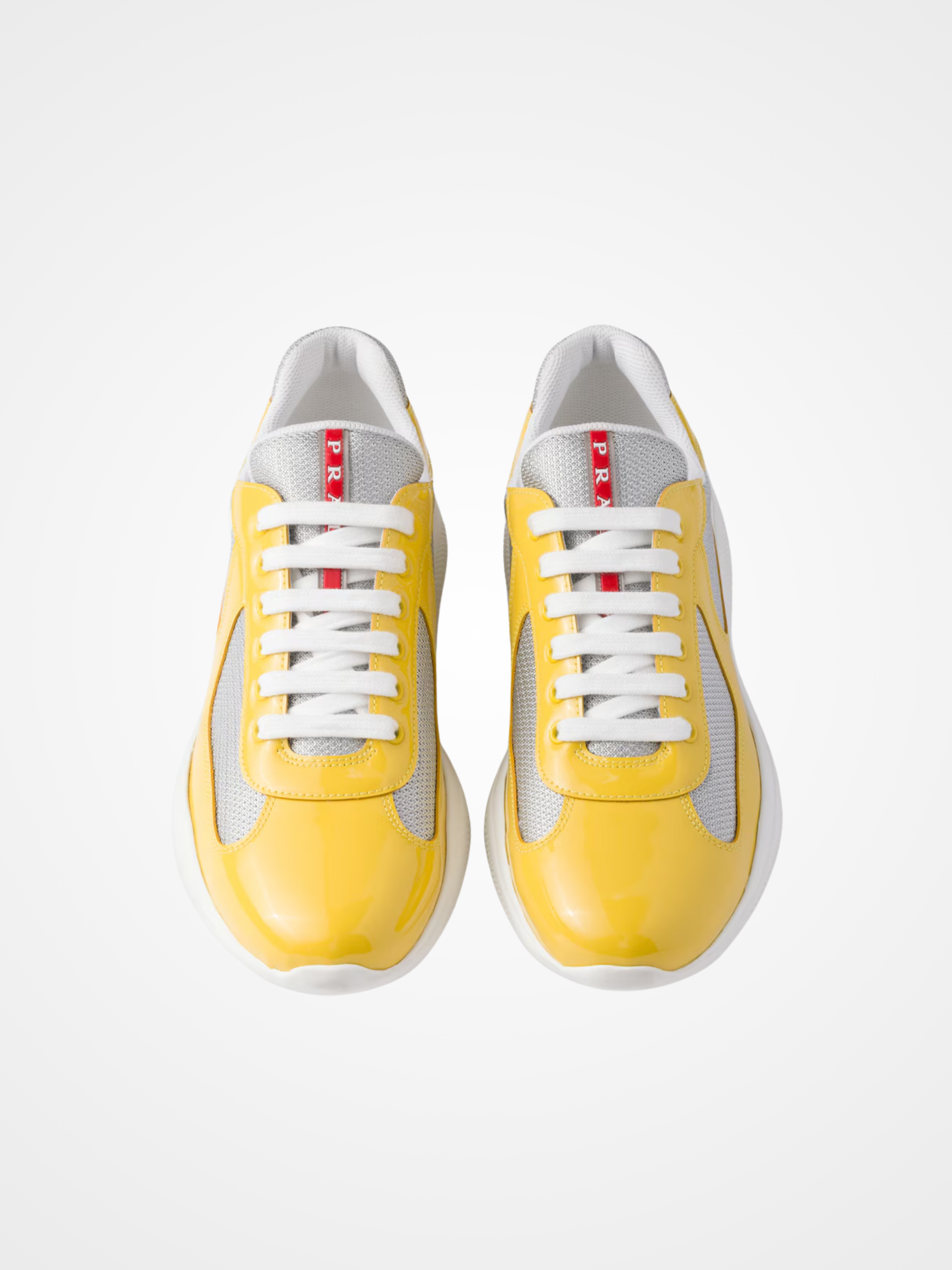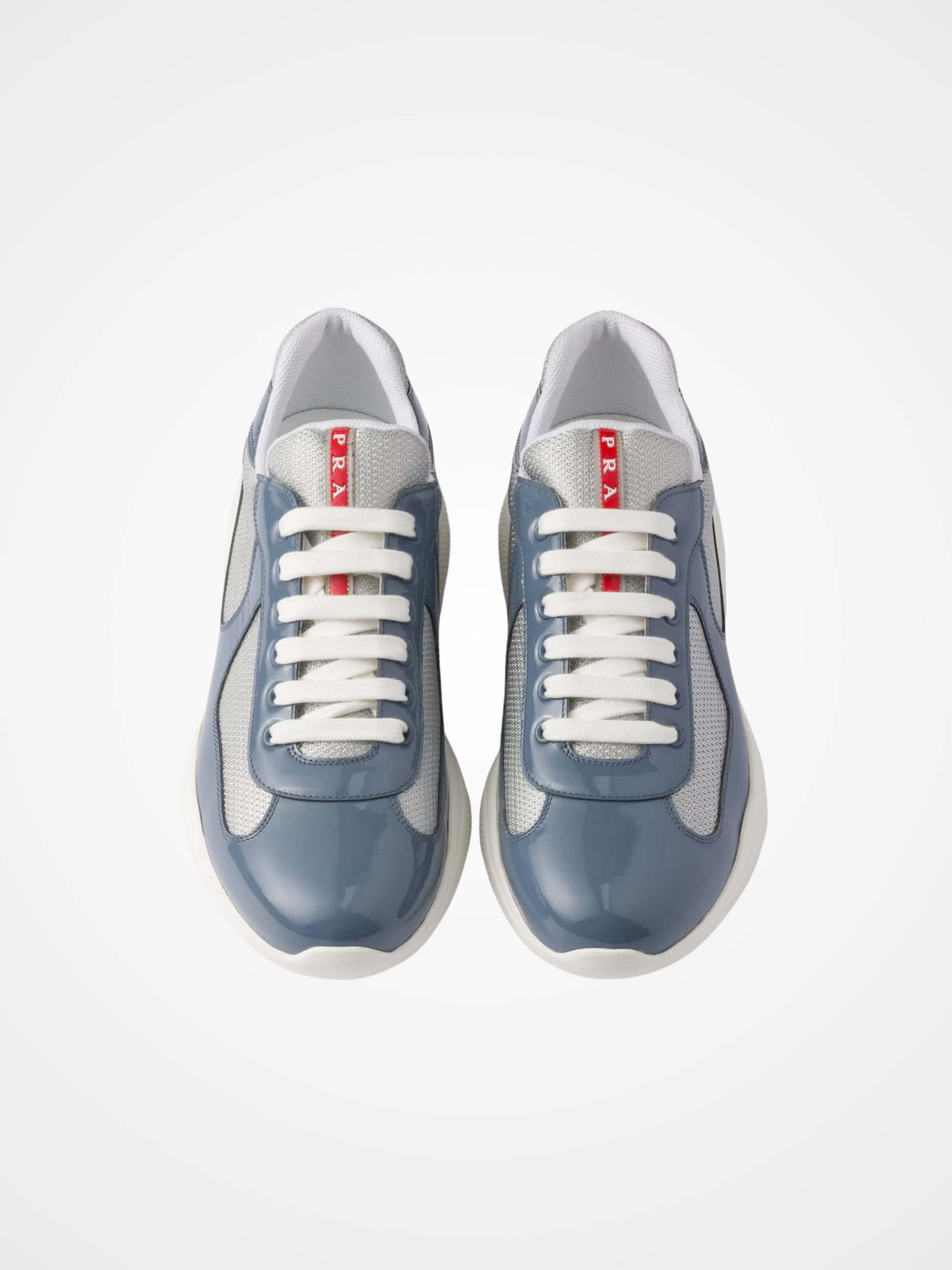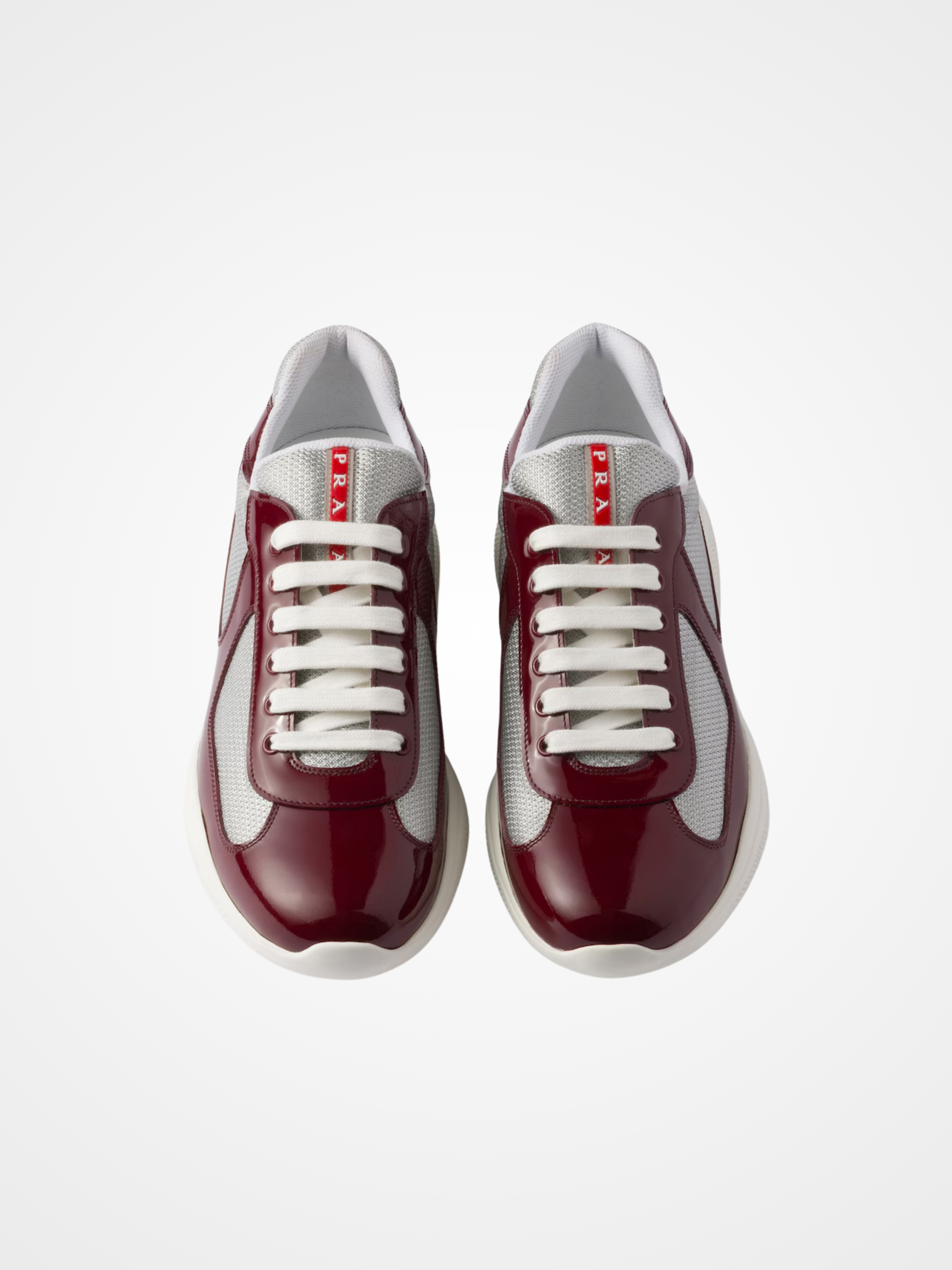 These patent leather sneakers with bike fabric inserts are inspired by an iconic aesthetic. The unmistakable logo on the tongue and sole enhances the design.