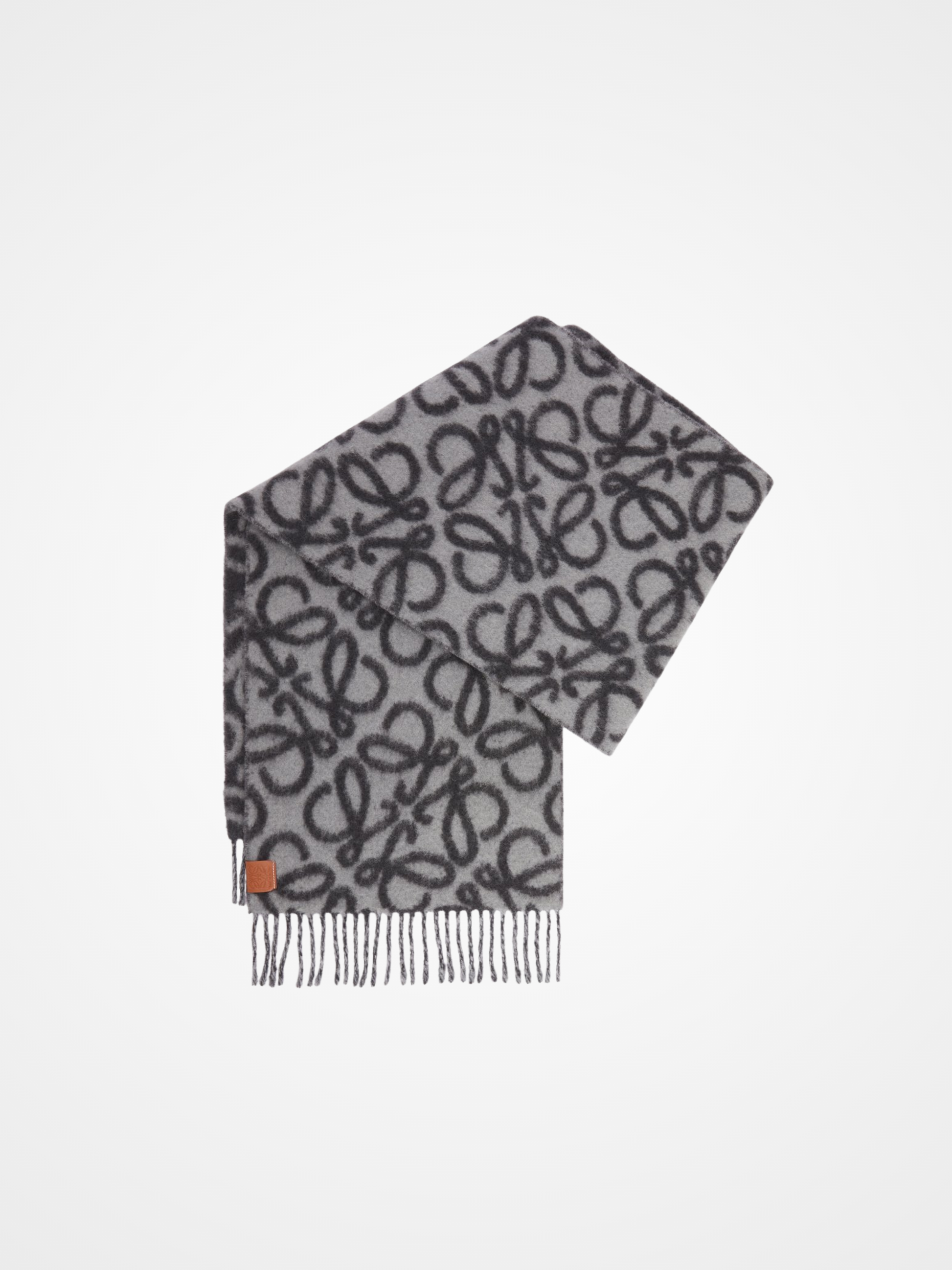 Scarf in double face alpaca and wool blend jacquard featuring an allover Anagram pattern.