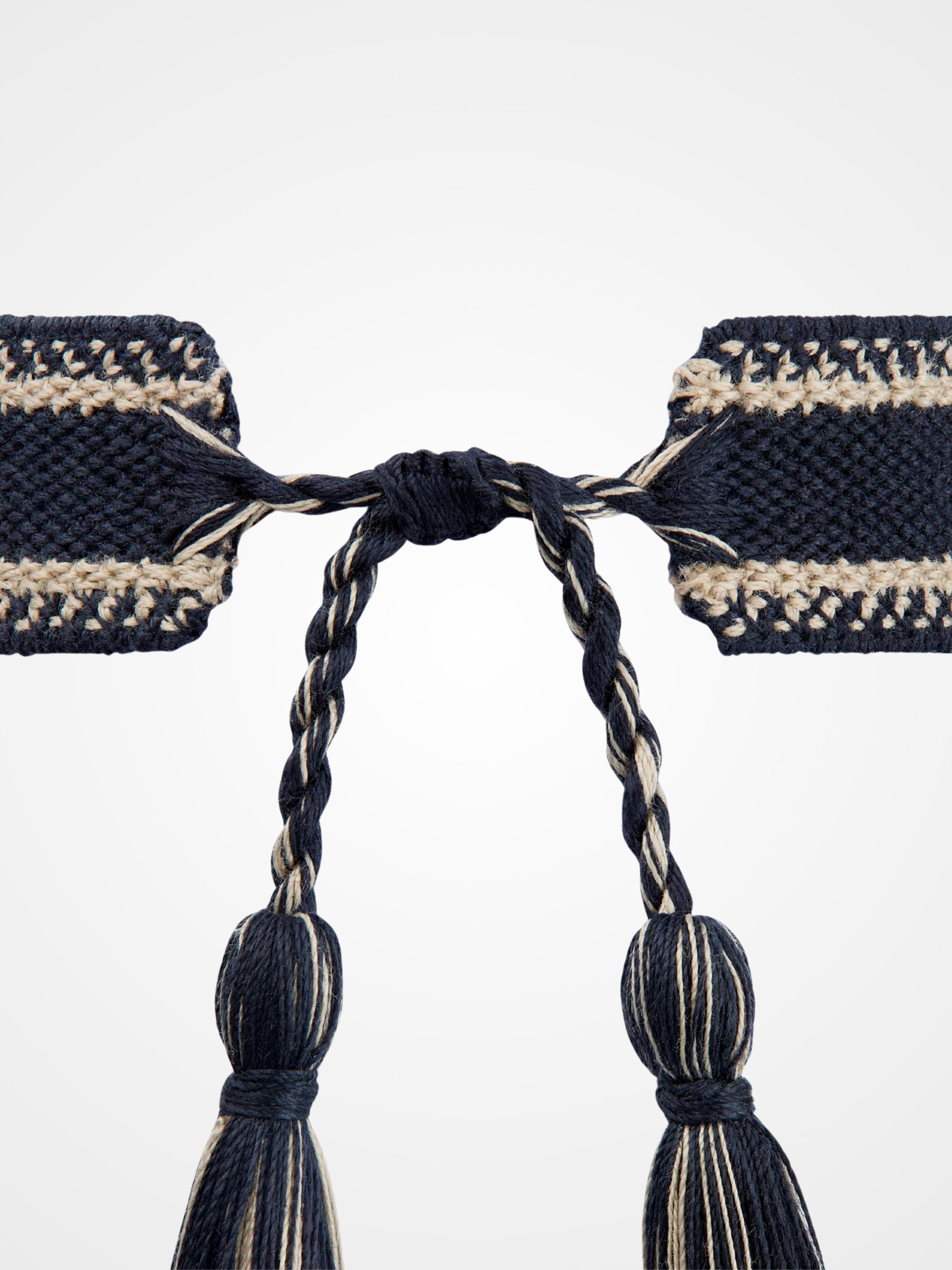 The Diar Signature Bracelet features an embroidered Diar signature on a navy blue Dior Oblique motif, blending iconic style with effortless elegance. Finished with a slide fastening and tassel accents, this bracelet offers a comfortable, adjustable fit. It’s a chic, understated accessory perfect for everyday wear or layering with other pieces.