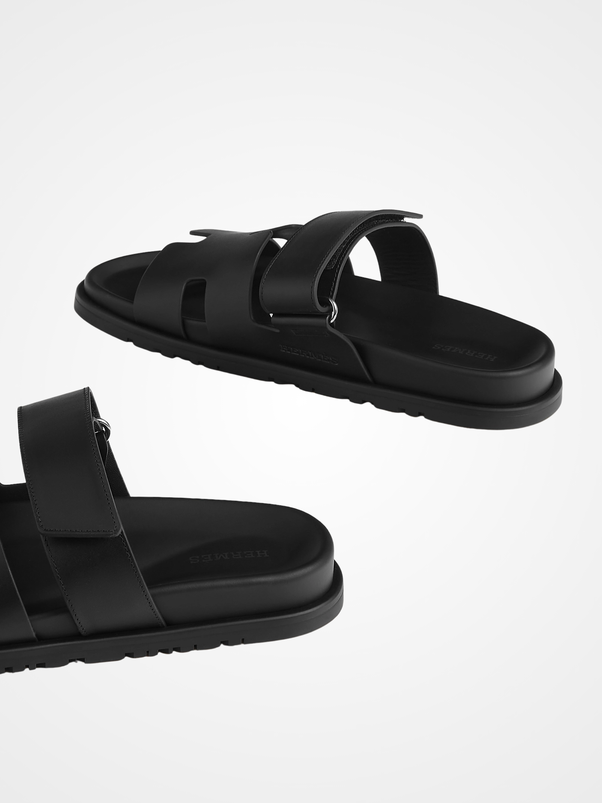 These Iconic Sandals combine luxury and comfort with a modern design. Featuring a black rubber sole, a black calfskin insole, and soft black goatskin lining, they offer a refined, comfortable fit while maintaining a sleek, minimalist aesthetic. Perfect for elevating both casual and dressy looks.