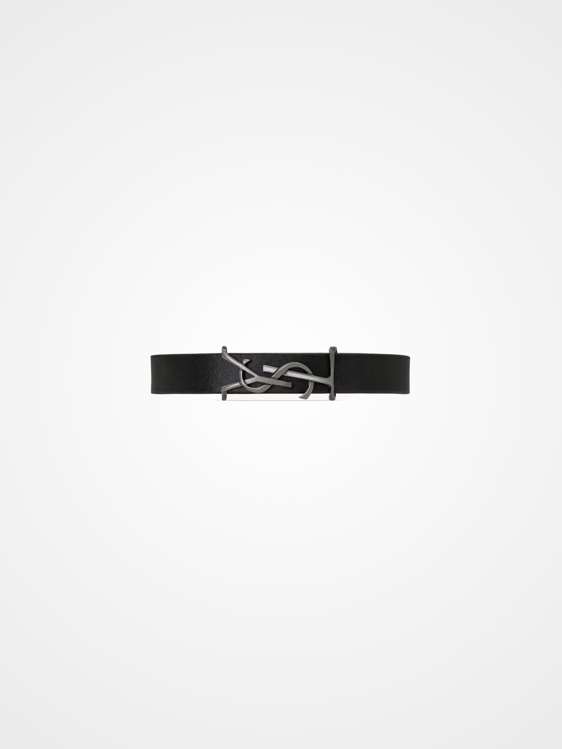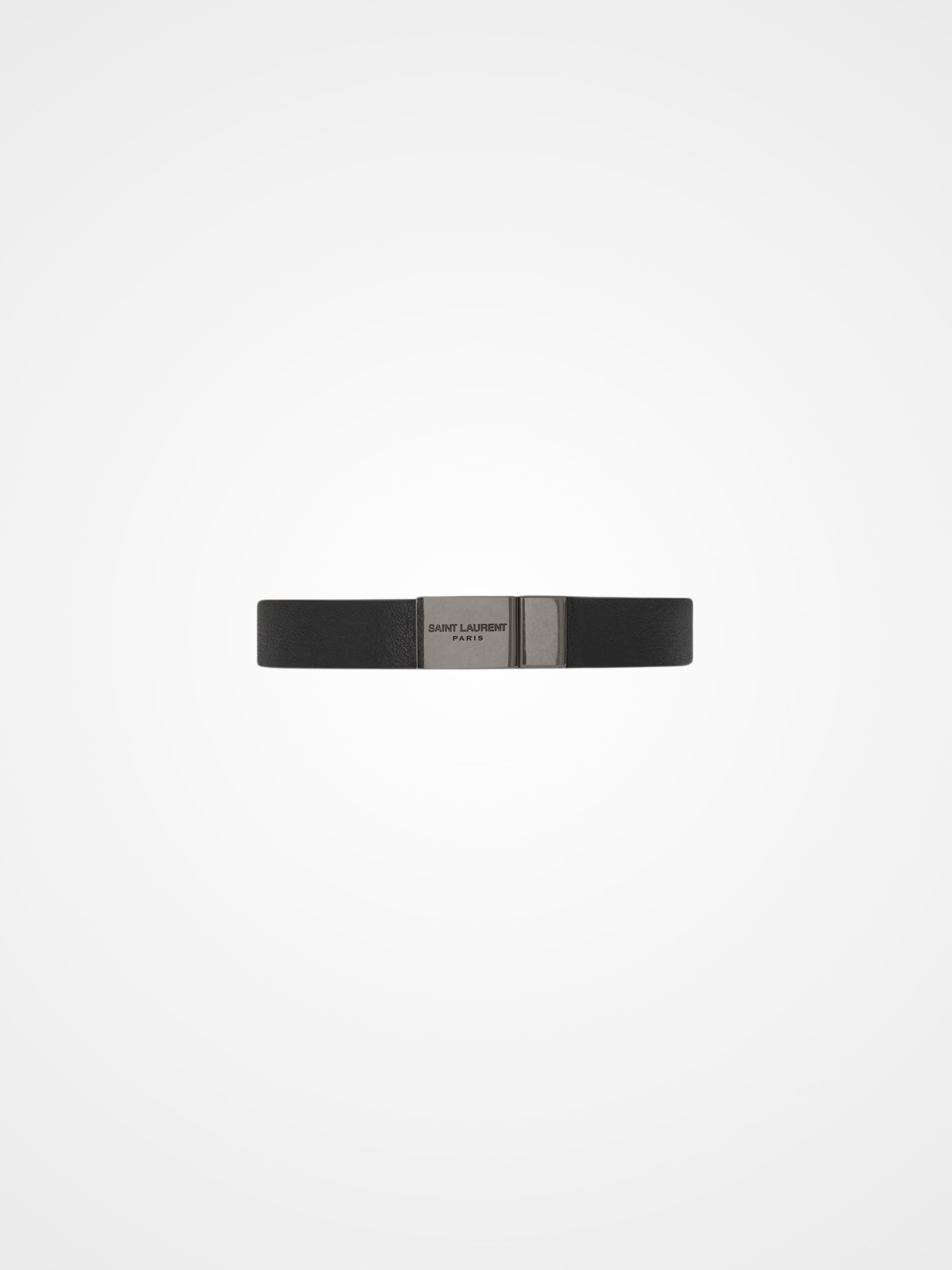 The Leather Cassandre Bracelet combines sleek design with refined craftsmanship. Made from 100% calfskin leather, it features a clip fastening engraved with a subtle signature detail, adding a touch of elegance. Crafted in Italy, this minimalist bracelet is versatile enough to wear alone or layered with other accessories.