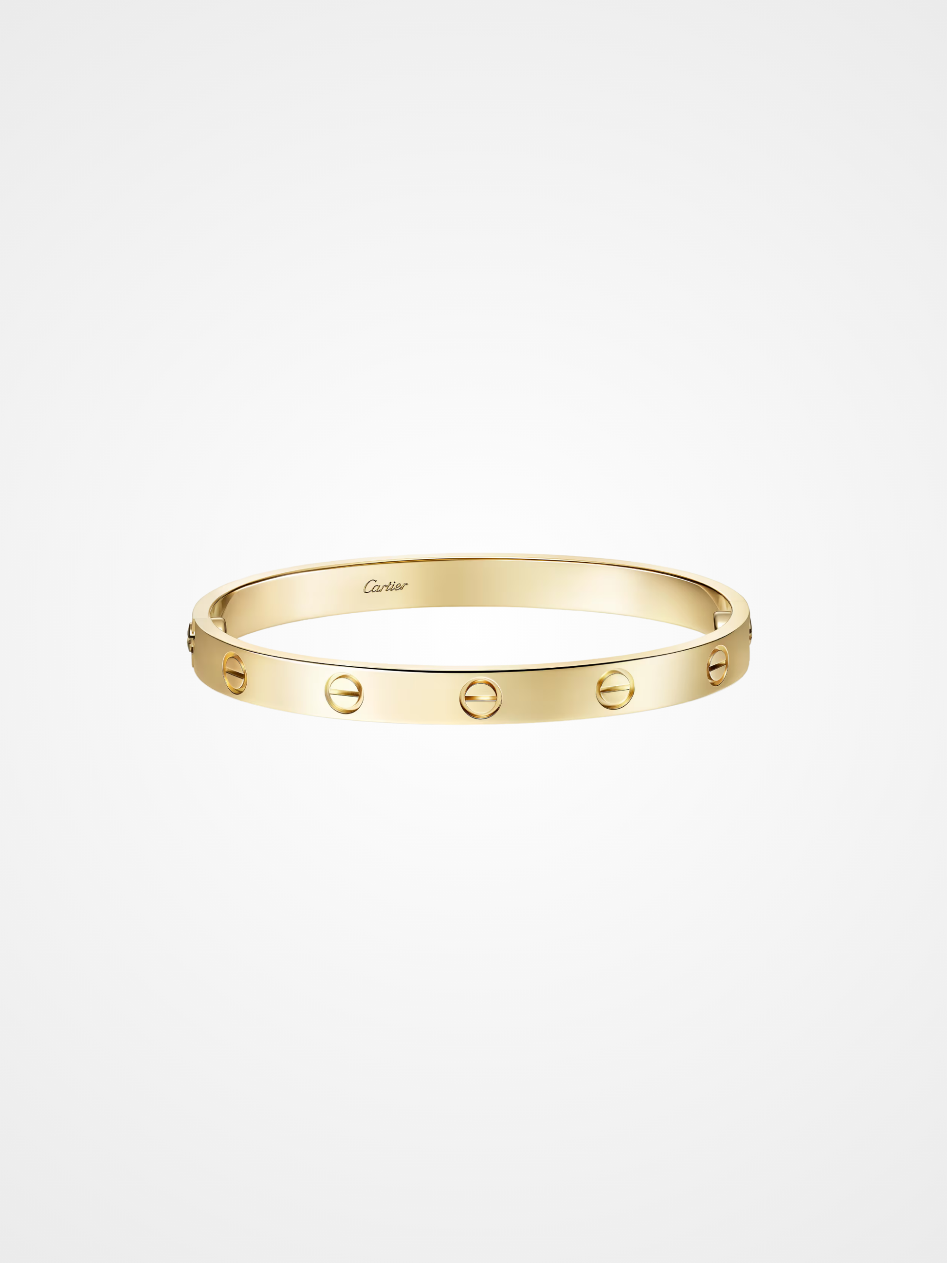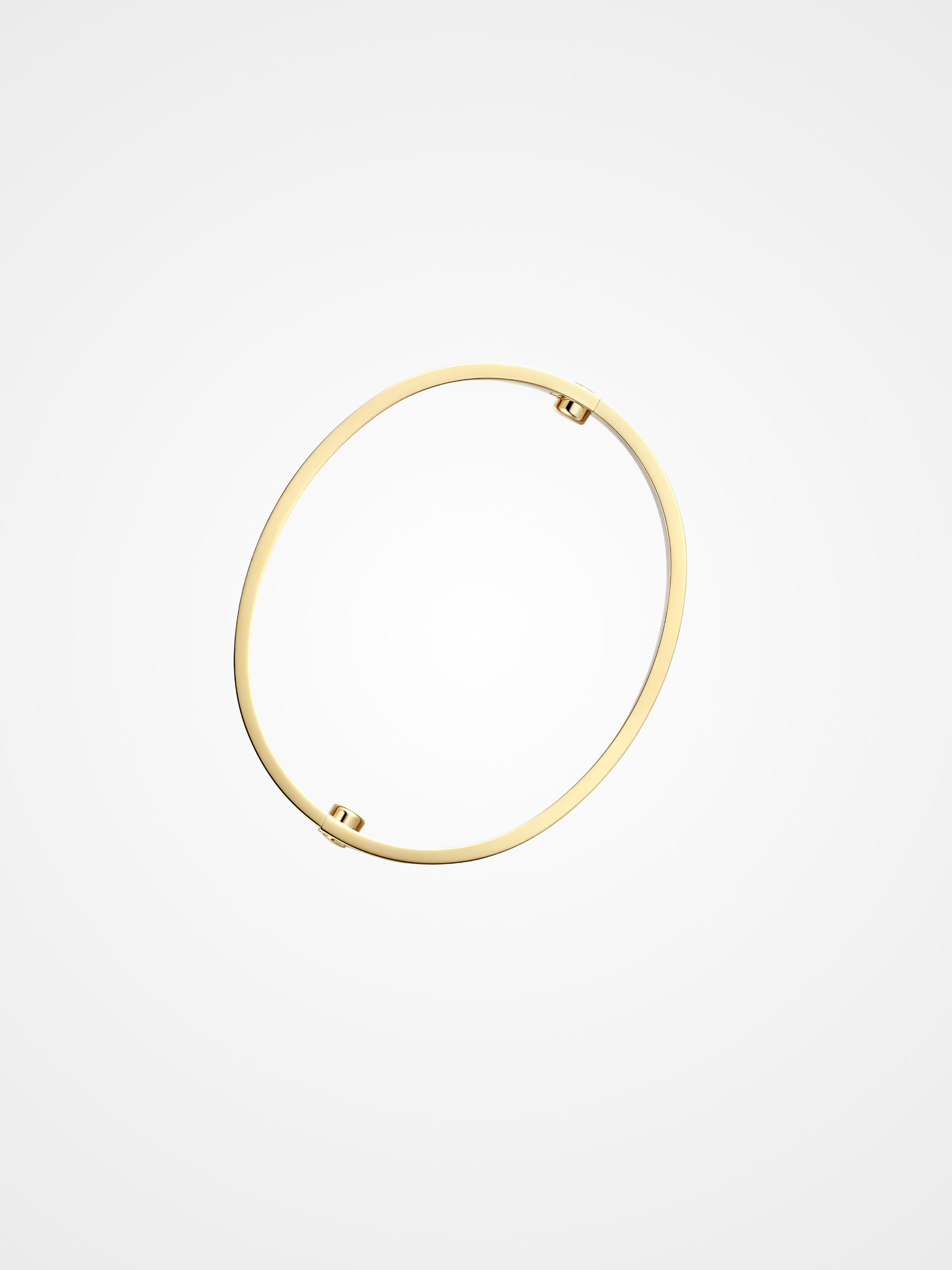 This iconic bracelet is a symbol of devotion and elegance, defined by its distinctive oval shape. Its design features two rigid arcs secured with functional screws, creating a bold yet refined silhouette on the wrist. Intended to be worn as a statement piece, it blends timeless style with a sense of intimacy and craftsmanship, embodying both strength and sophistication.