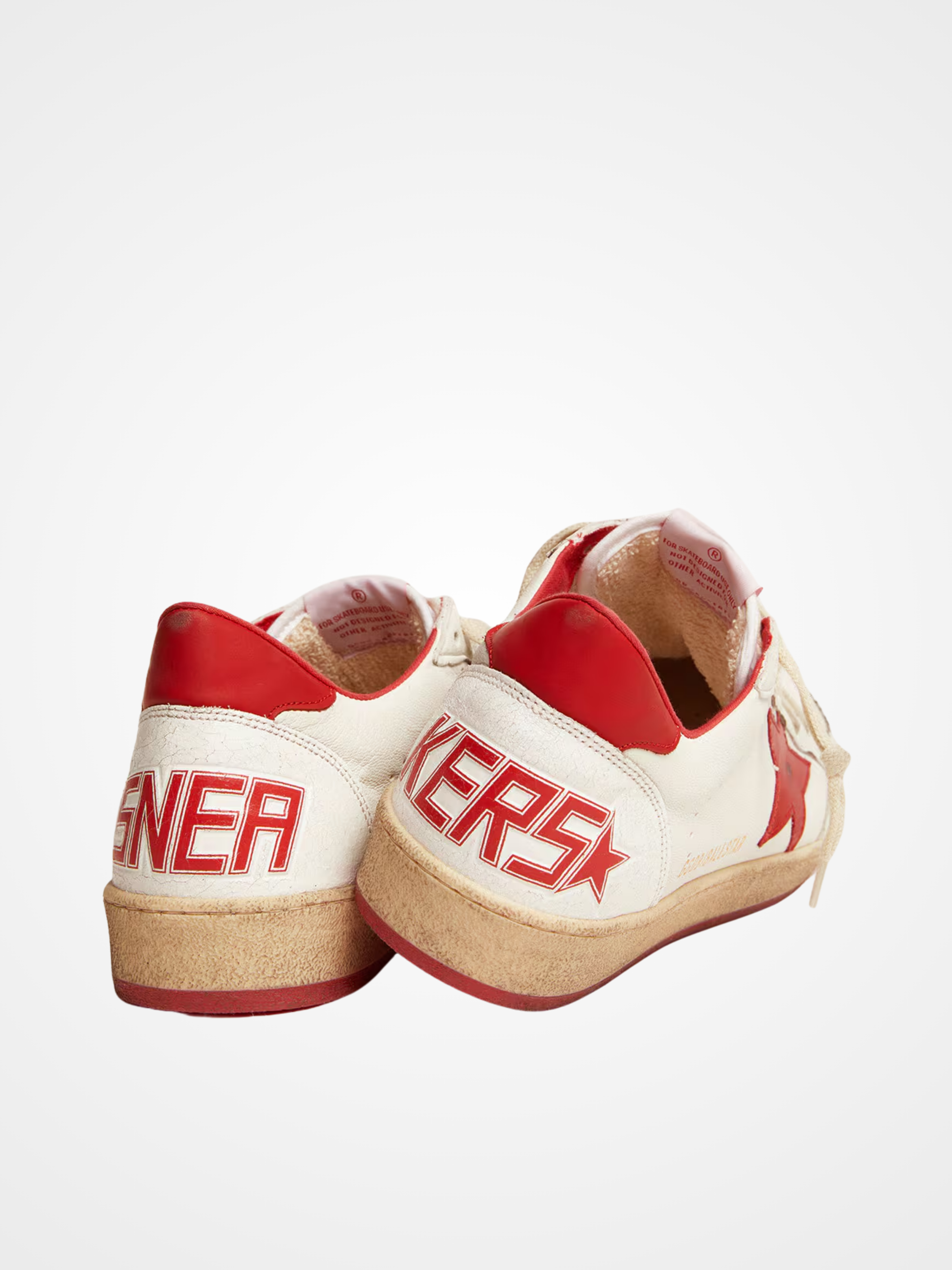 Dreaming of the Eighties. Our Ball Star sneakers have an American college vibe caught between a hoop shot and a skateboard ride. This model with a white leather upper features a red GGDB star and heel tab.