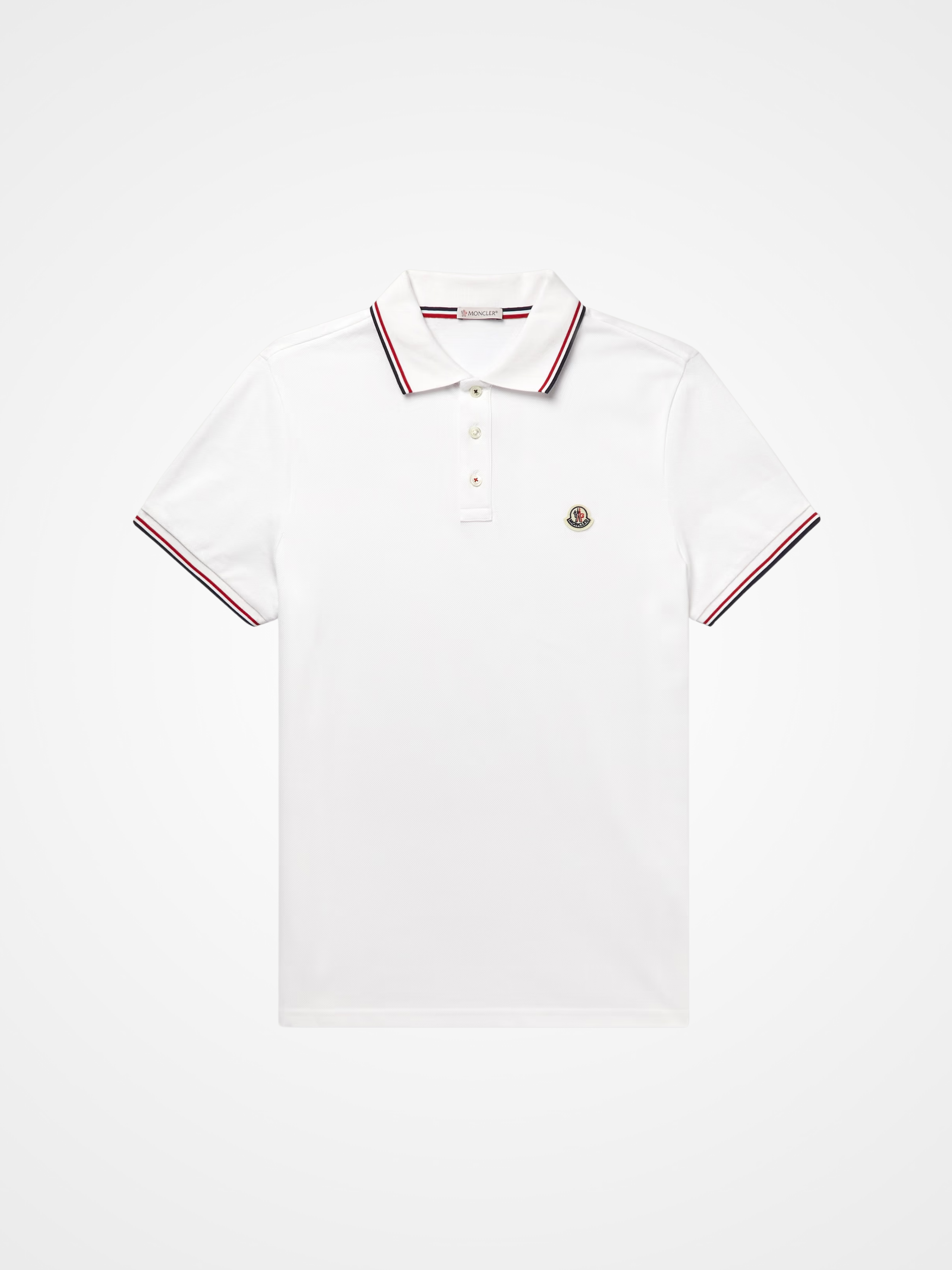 Even without the appliquéd logo on the chest, this polo shirt is recognisable as a Moncler design by the striped trims, which reference the French flag, and if you look closely you'll see the buttons are sewn on with threads in the same tricolour. This piece is made from cotton-piqué and cut in a comfortable, easy fit.